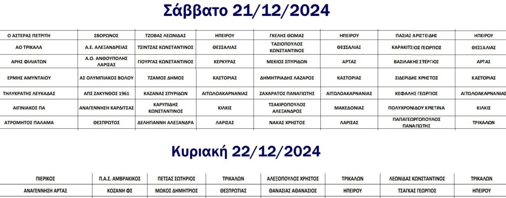 Από την Κεντρική Επιτροπή Διαιτησίας ανακοινώνονται οι ορισμοί για τους αξιωματούχους διαιτησίας της 16ης αγωνιστικής του πρωταθλήματος της Γ’ Εθνικής 2024-25.