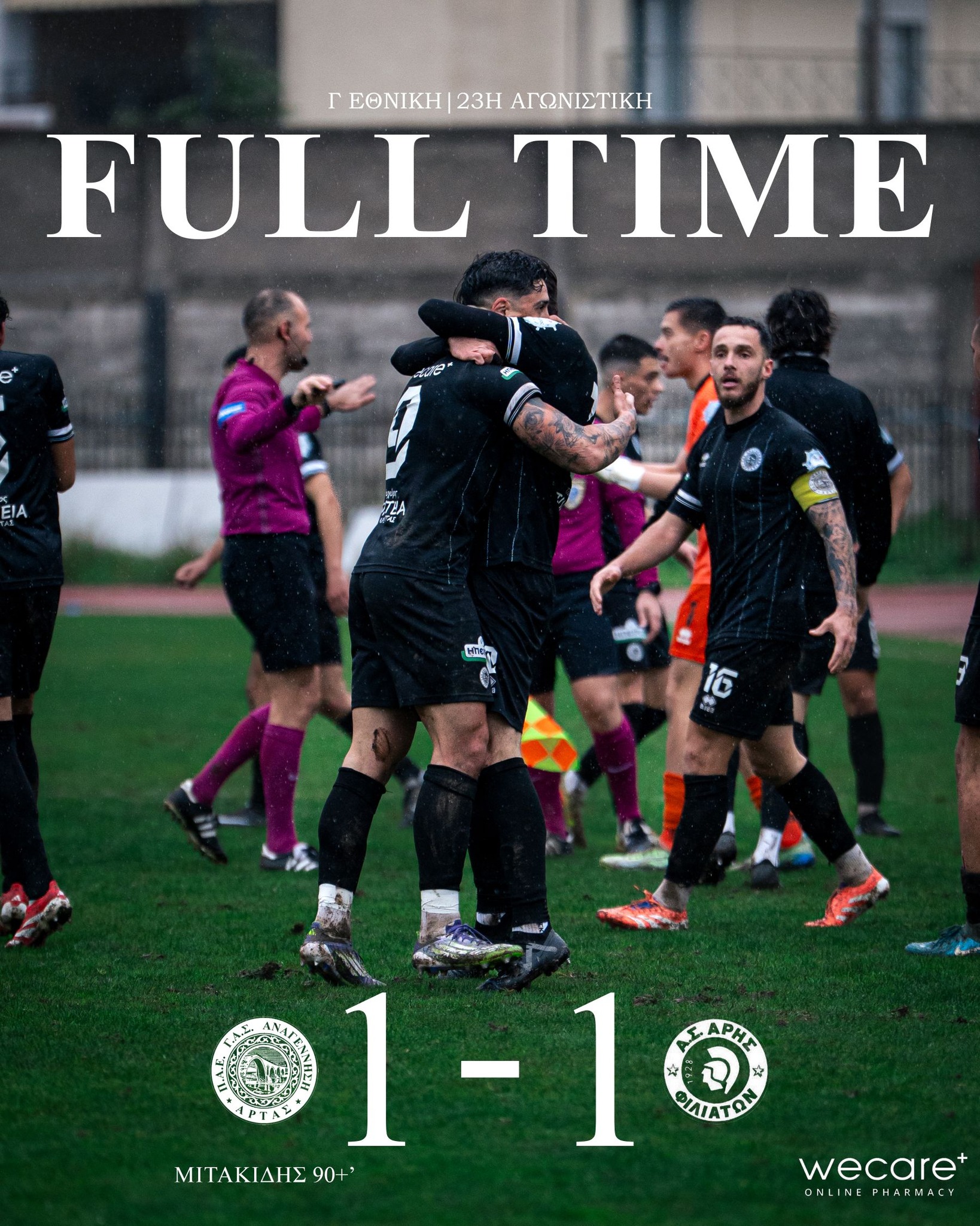 Ισόπαλο 1-1 ολοκληρώθηκε το παιχνίδι μεταξύ Αναγέννησης και Άρη Φιλιατών στην Άρτα για την 23η αγωνιστική της Γ΄ Εθνικής.
