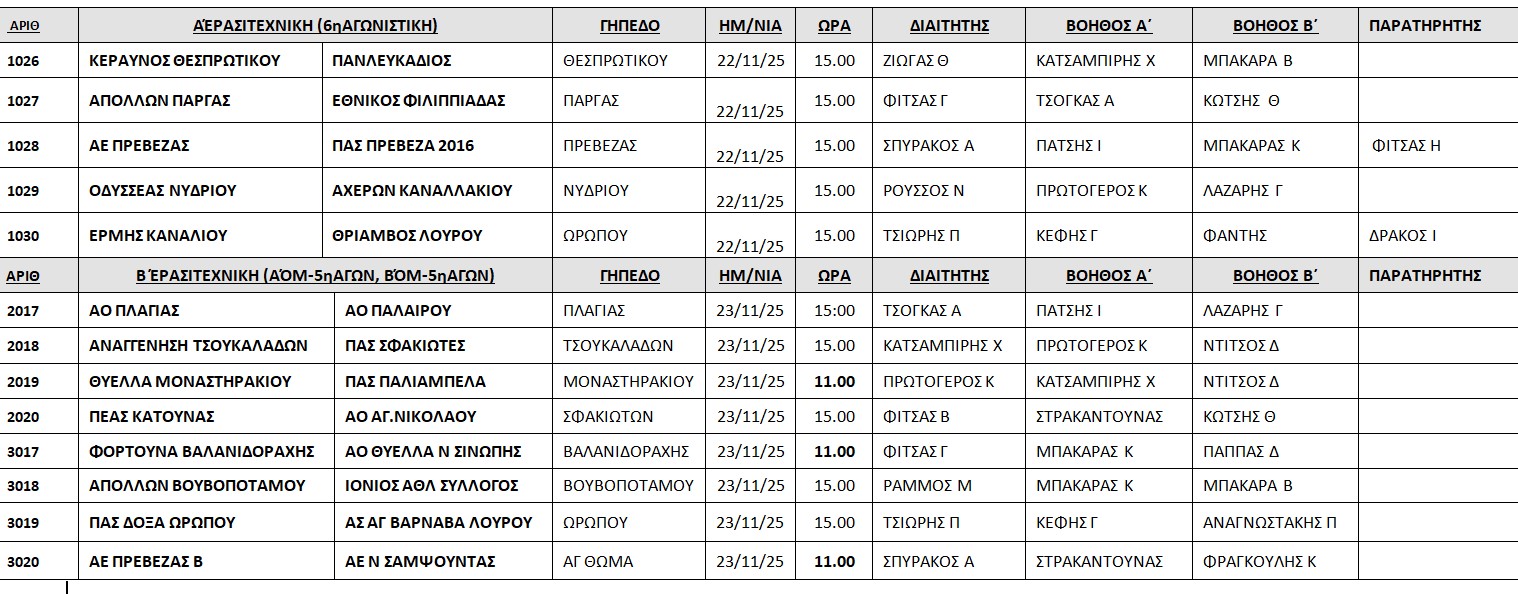 Ανακοινώθηκαν από την Επιτροπή Διαιτησίας της ΕΠΣ Πρέβεζας-Λευκάδας, οι διαιτητές που θα διευθύνουν τα παιχνίδια του...