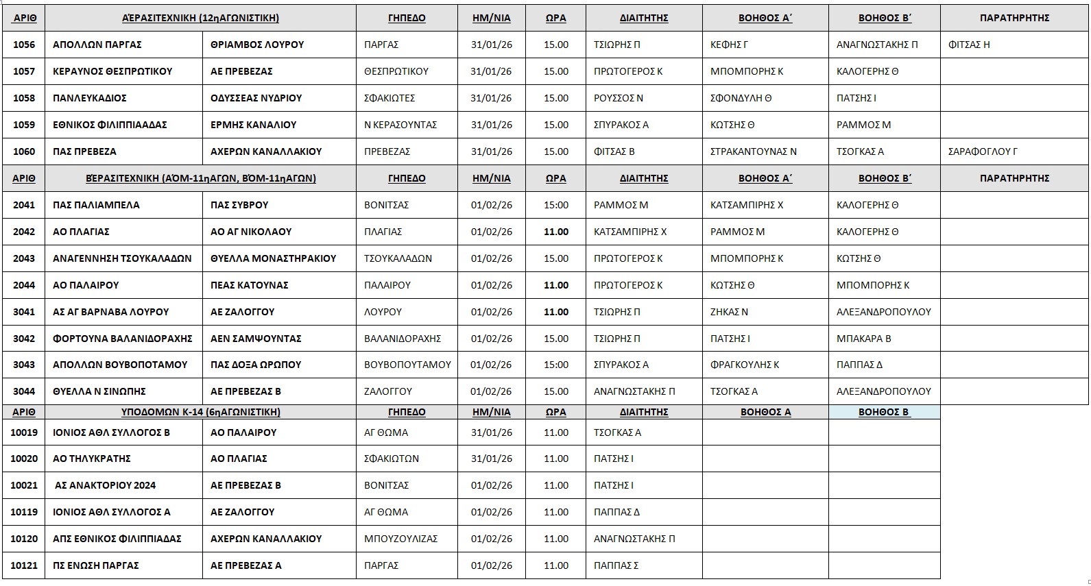 Ανακοινώθηκε από την Πειθαρχική Επιτροπή της ΕΠΣ Πρέβεζας-Λευκάδας το ποινολόγιο. Αναλυτικά: