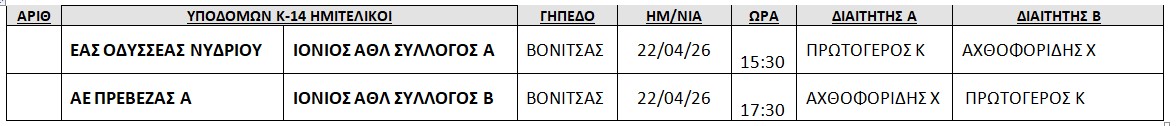 ΠΡΟΓΡΑΜΜΑ – ΒΑΘΜΟΛΟΓΙΕΣ – ΑΠΟΤΕΛΕΣΜΑΤΑ
