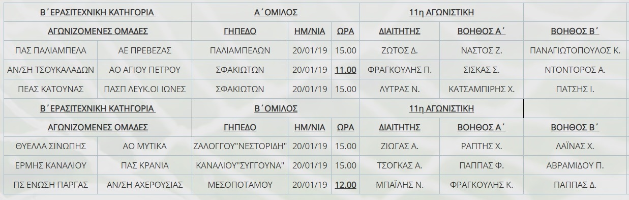 Δείτε ποιους όρισε η Επιτροπή Διαιτησίας της ΕΠΣ Πρέβεζας-Λευκάδας στους αγώνες της 11ης αγωνιστικής στην Β΄ κατηγορία σε Α΄ και Β΄ όμιλο.