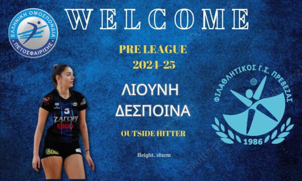 ΑΝΑΚΟΙΝΩΣΗ Ο Φ.Γ.Σ Πρέβεζας ανακοινώνει 22χρονη την απόκτηση της Δέσποινας Λιούνη. Η 22χρονη βολεϊμπολίστρια, γεννήθηκε στις...