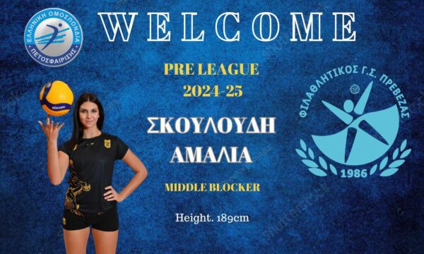 O Φ.Γ.Σ Πρέβεζας και το τμήμα Βόλεϊ Γυναικών ανακοινώνουν την απόκτηση της Αμαλίας Σκουλούδη. Η 20χρονη βολεϊμπολίστρια,...