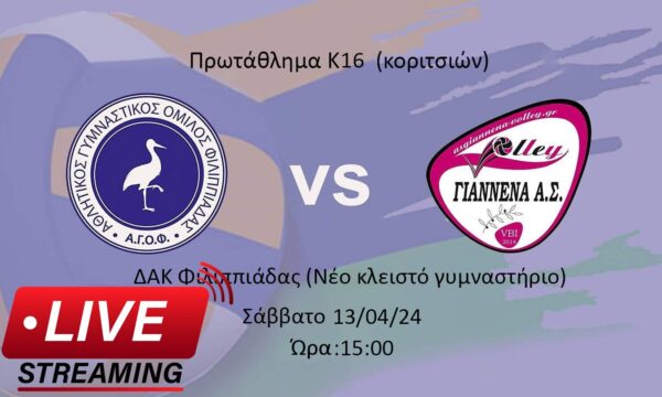 Ζωντανή μετάδοση Α.Γ.Ο.Φ. – ΓΙΑΝΝΕΝΑ Α.Σ. Πρωτάθλημα Κ16 13/04/2024