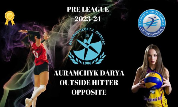 Η 23χρονη Λευκορωσίδα AURAMCHYK DARYA, αποτελεί την 4η μεταγραφική κίνηση του Φ.Γ.Σ Πρέβεζας, ενόψει της νέας σεζόν και το...