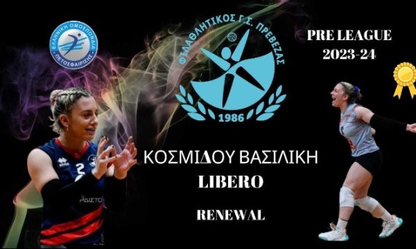 Μια από τις αθλήτριες που κοσμούν το Πρεβεζάνικο βόλεϊ η λίμπερο Βασιλική Κοσμίδου θα συνεχίσει να...