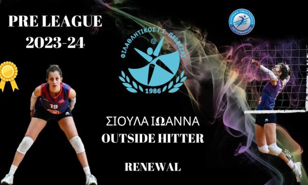 Η ακραία παίκτρια Ιωάννα Σιούλα ανανέωσε τη θητεία της με την ομάδα του Φιλαθλητικού Πρέβεζας και...