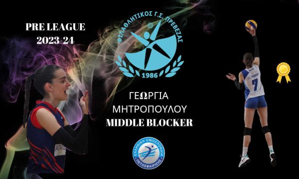 Με την 18χρονη (γεννημένη 2005) ταλαντούχα κεντρική παίκτρια Γεωργία Μητροπούλου, ενισχύθηκε ο Φιλαθλητικός Πρέβεζας, αποτελώντας την...